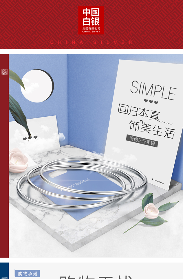 中国白银集团有限公司 女士999千足银手镯,不加以浓墨重彩,越繁杂而回归的自然美,别有韵味,表面经过抛光,轻奢又闪亮。千年古法手工银器,传承中华经典匠心精神。诠释优雅、质朴且精巧的银饰东方美学、成就质感美物,赋传统文化之魂。
