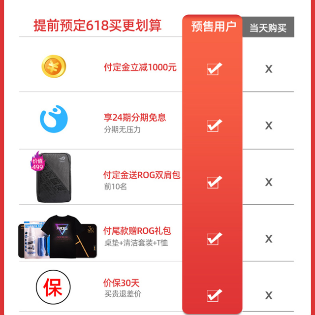 天猫ASUS华硕旗舰店24日20点开始预售,需定金100元,定金立减1000元,叠加50元优惠劵,1日0点付尾款,到手价5949元包邮,4K分辨率IPS,144Hz刷新,双重信仰灯。近期好价,感兴趣的买买可以关注。