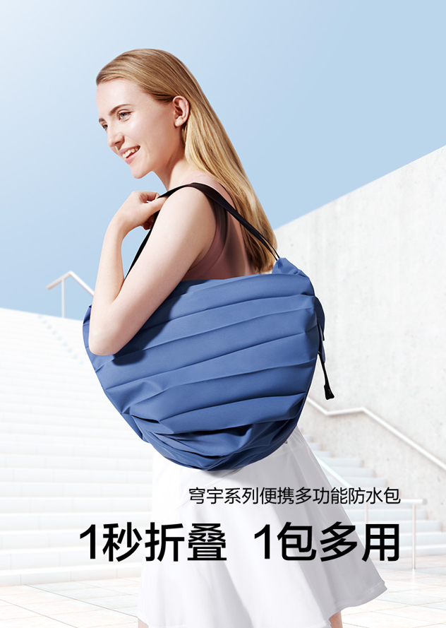 这款Beneunder 蕉下 穹宇系列 2021年新款便携多功能防水包,包身采用抗撕裂聚酯纤维材质,轻量纤维经纬交织,形成柔韧细腻的轻量材料,结合轻量无隙包身组合设计,打造“无压”携带体验,一体成型的记忆性收褶结构,使包身可凭借自身材料记忆,快速折叠,便于收纳,1个便携防水包=便携购物袋+游泳包+健身包+旅行包+通勤包+防护雨包,具有轻量、防水、便携、大容量等多重功效,多场景适用。防水包收纳状态长度仅10cm,仅有半个手掌大小,放进随身包里也毫无压力。承重≈7KG,撑开容量约12L。