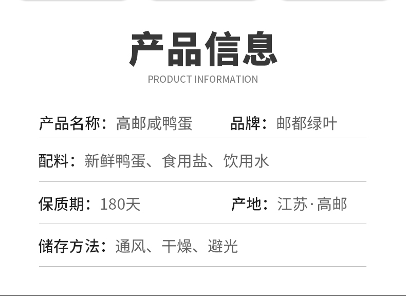 这款邮都绿叶 正宗高邮流油咸鸭蛋,江苏省扬州市高邮德媛鑫食品有限公司生产,鸭蛋源自高邮湖区自然放养鸭,经过45天传统黄泥腌制,盐度均匀渗透,咸度适中,没有使用其他任何添加剂,个大油多,蛋白细嫩,蛋黄红沙流油,单枚经过高温杀菌,最后真空包装,干净卫生。