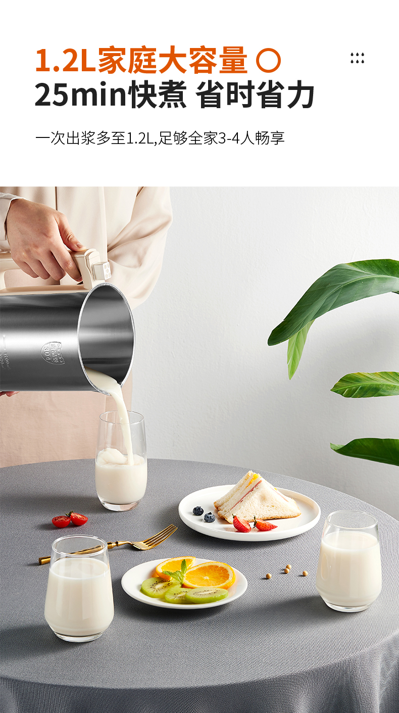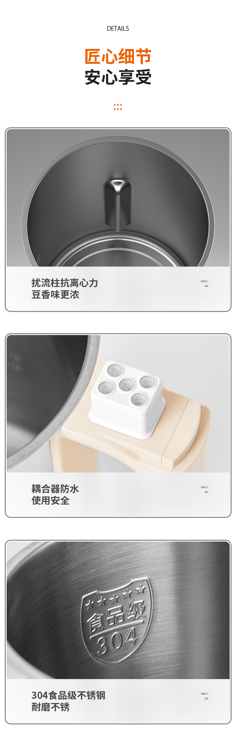机身与杯体架空设计,有助于豆浆熬煮更熟透美味,蒸汽释放顺畅不形成压力,使用更安全。
