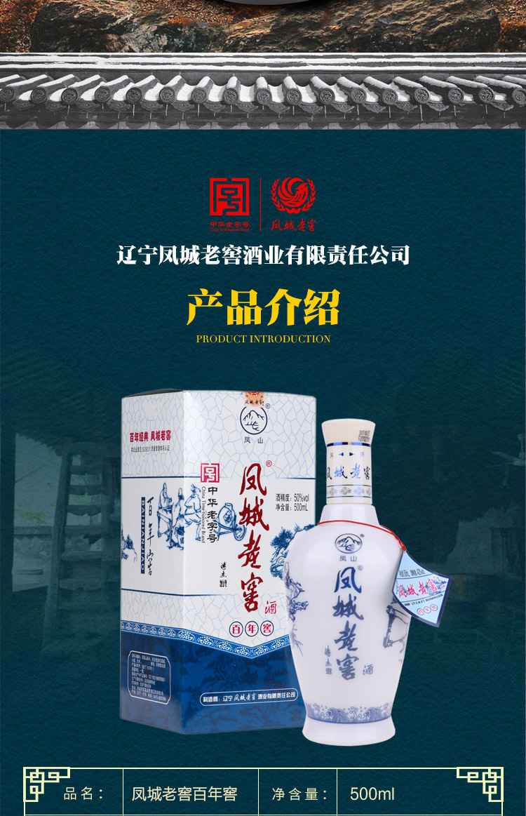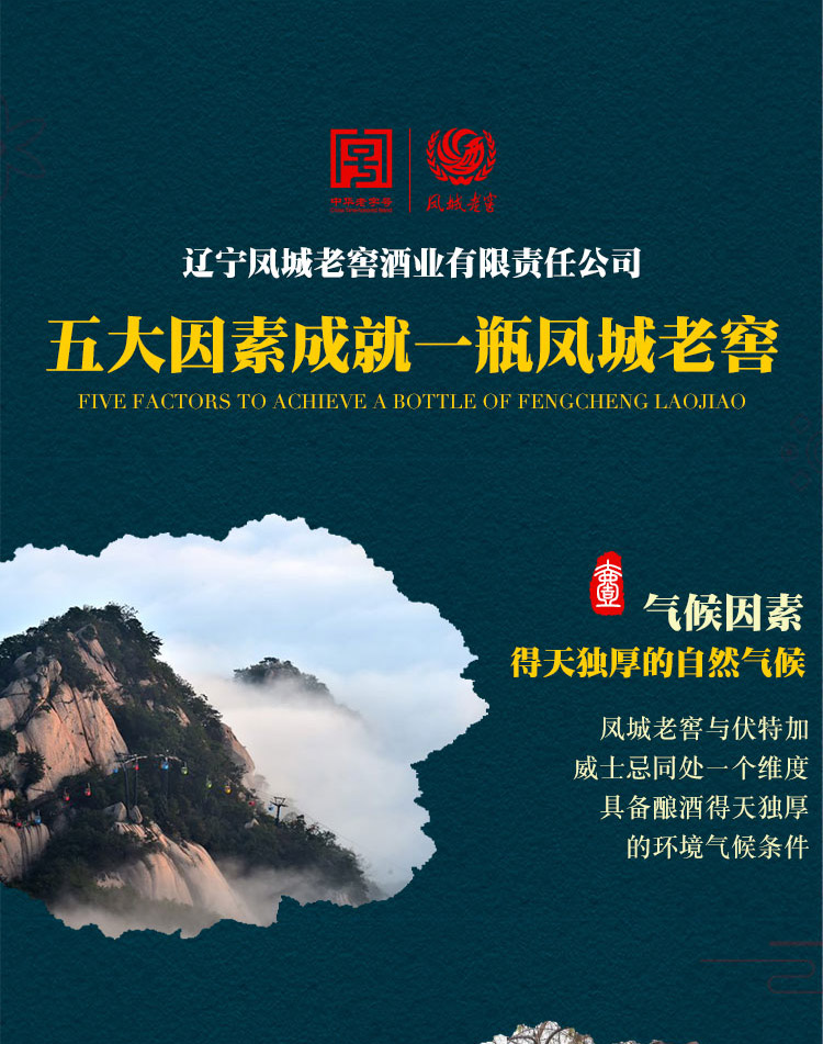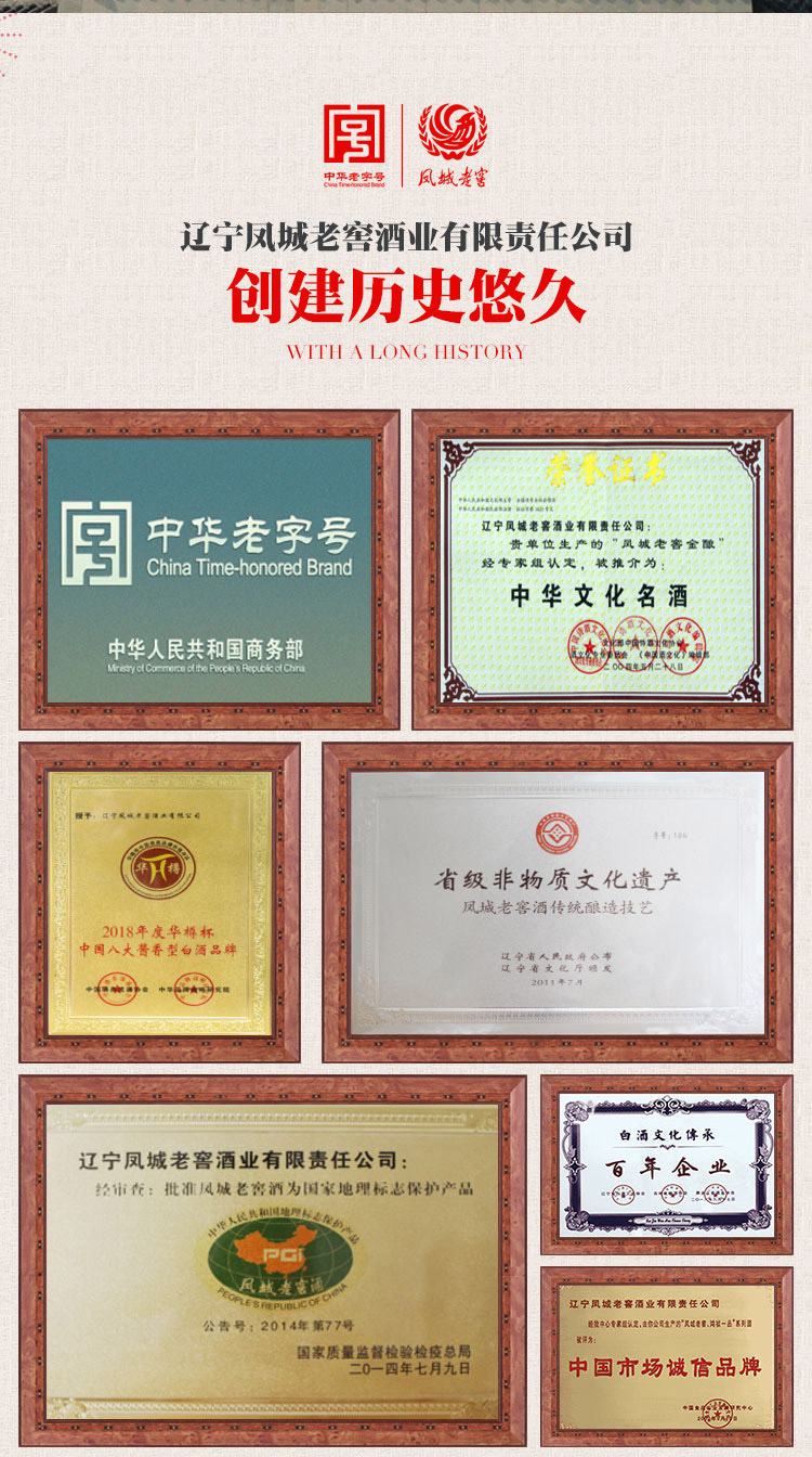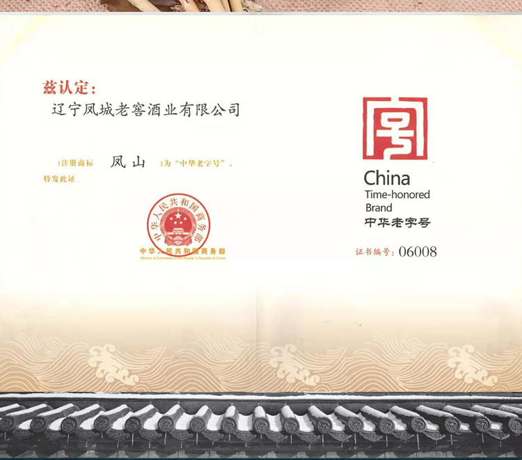 凤城老窖是中华十大文化名酒之一,辽东第一名酒,以麸曲酱香,口感纯正著称。辽宁省凤城老窖有限责任公司于1905年始建而成,由爱新觉罗·溥仪皇帝之弟亲笔提名“凤城老窖”。