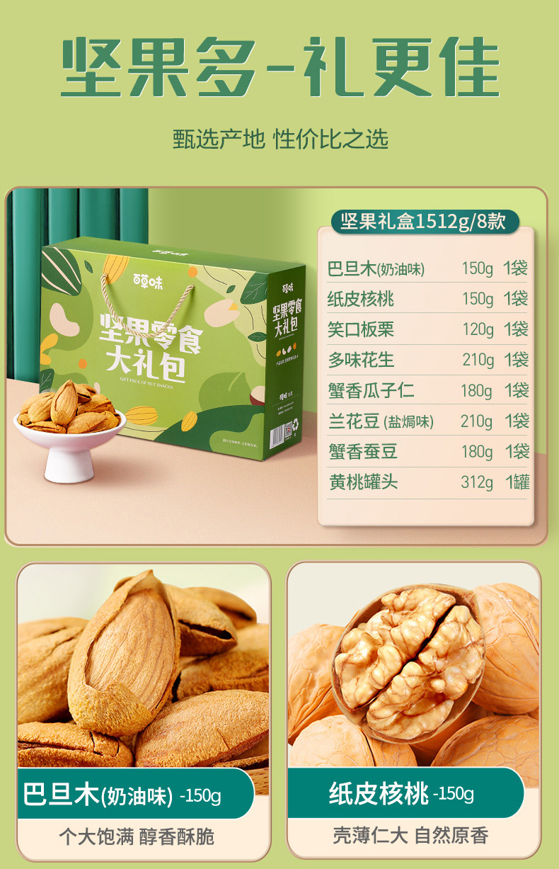 坚果多-礼更佳:1512g/8袋(宝石绿款) 自享礼-超人气:1520g/8袋(宝石绿款)