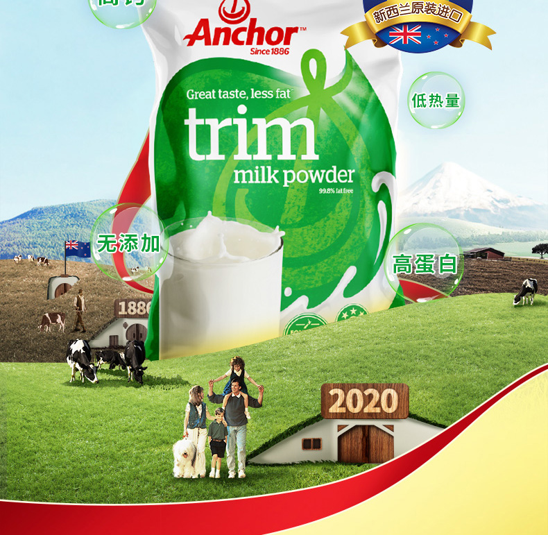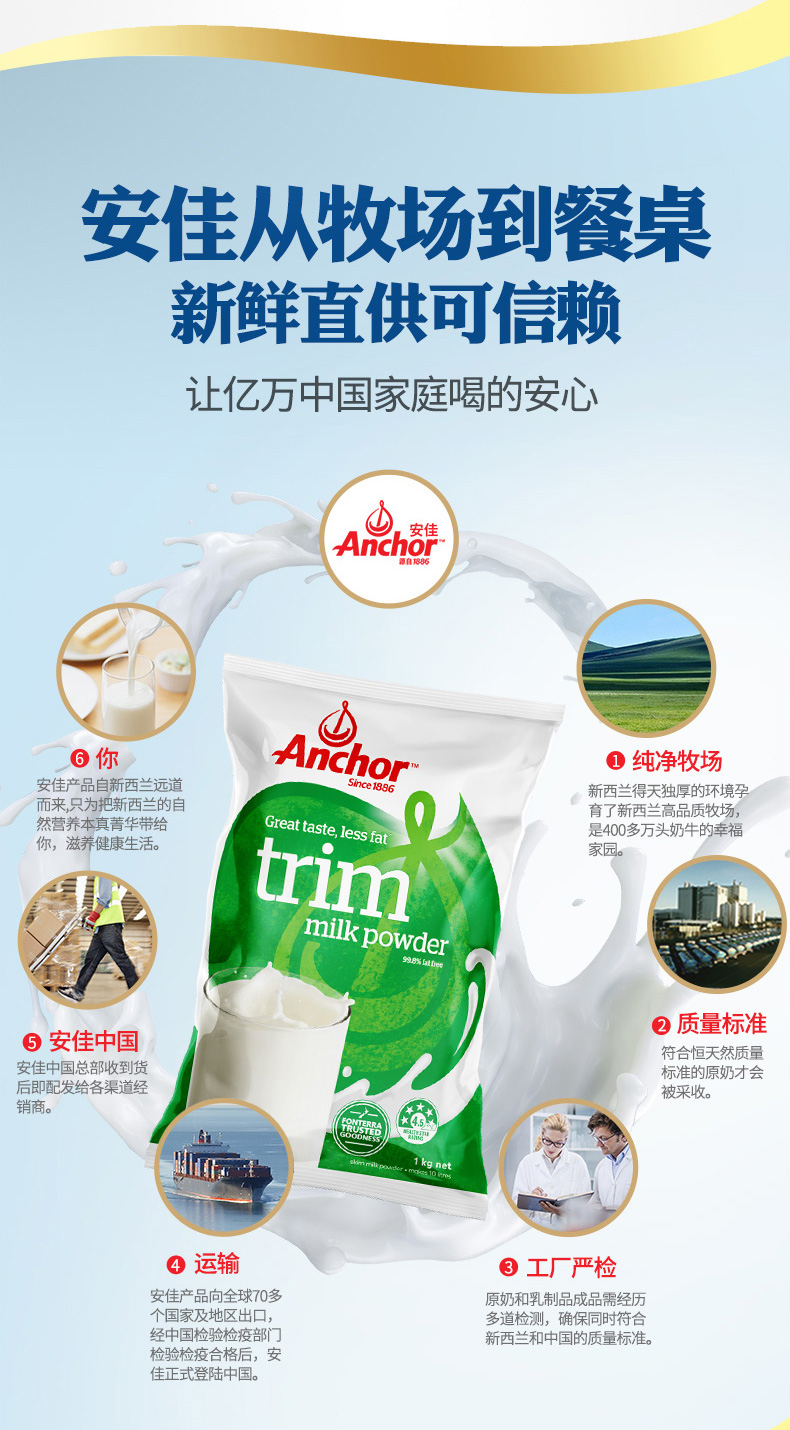 安佳Anchor是新西兰最大的乳制品生产公司Fonterra恒天然旗下品牌,创立于1886年,是世界六大乳制品公司之一,为140多个国家和地区提供乳制品,新西兰的天然环境近乎于纯净,而且对于乳制品,新西兰有专门的立法监管体系,品质值得信赖。