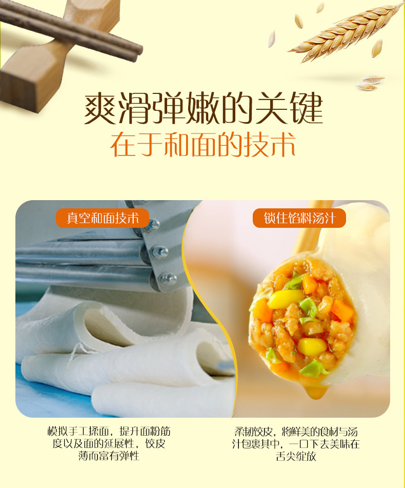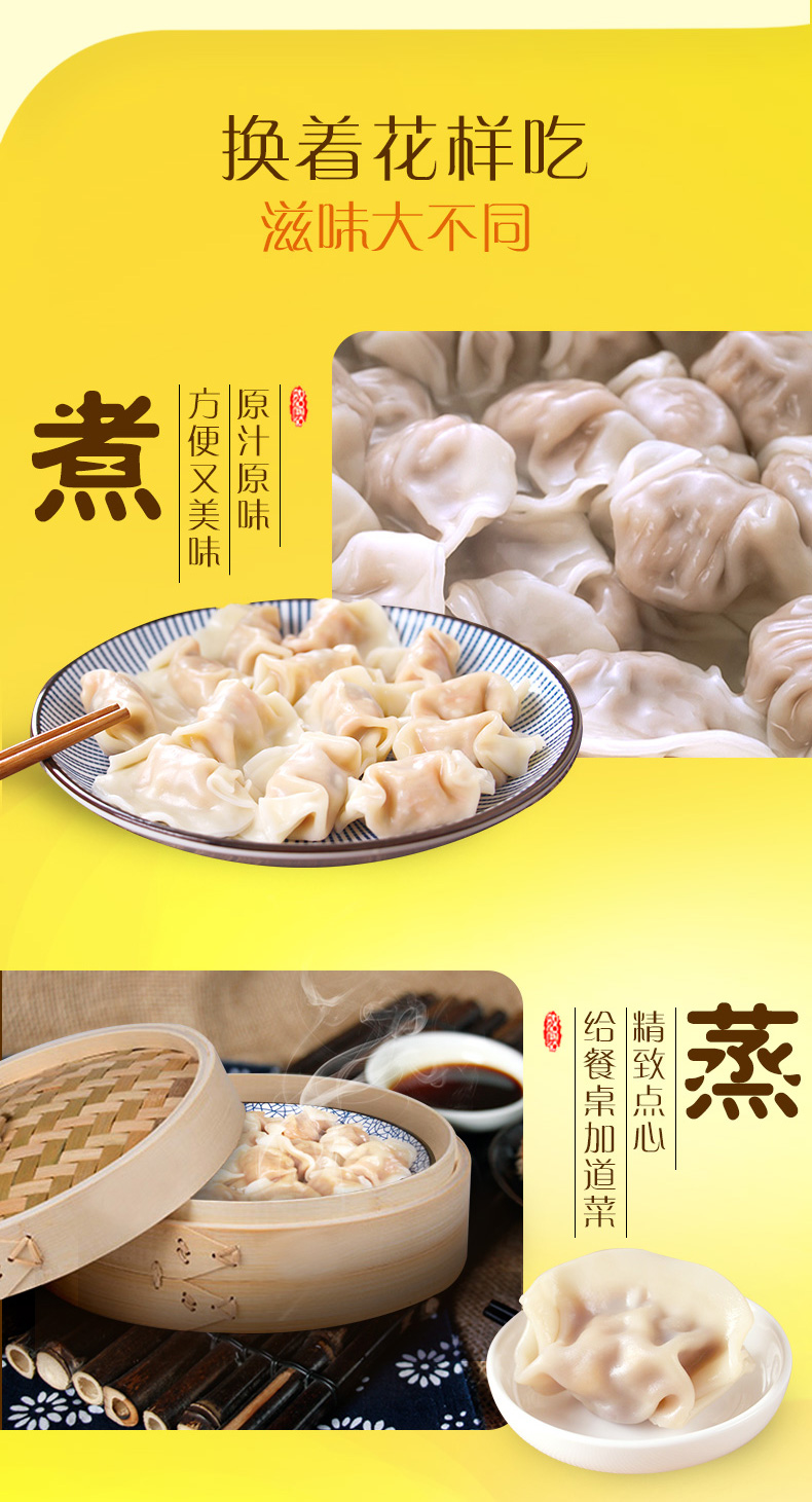 面皮采用纯天然小麦七道揉捻皮薄Q弹不破,馅料优选猪前腿肉,滑嫩鲜甜美味搭配鲜美菜蔬,独门配方原汁原味,汁香四溢免蘸酱。鲜甜港式风味,口感鲜香顺滑。