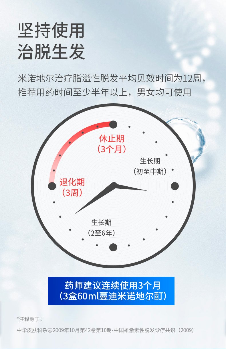 蔓迪米诺地尔酊用量:蔓迪米诺地尔酊为局部外用药,每次1毫升(定量定向喷雾装置喷6~8次为1毫升),每日两次。蔓迪米诺地尔酊正确用法:涂于头皮脱发部位,从患处中心开始涂抹蔓迪米诺地尔酊,并用手按摩3~5分钟。领券链接点此