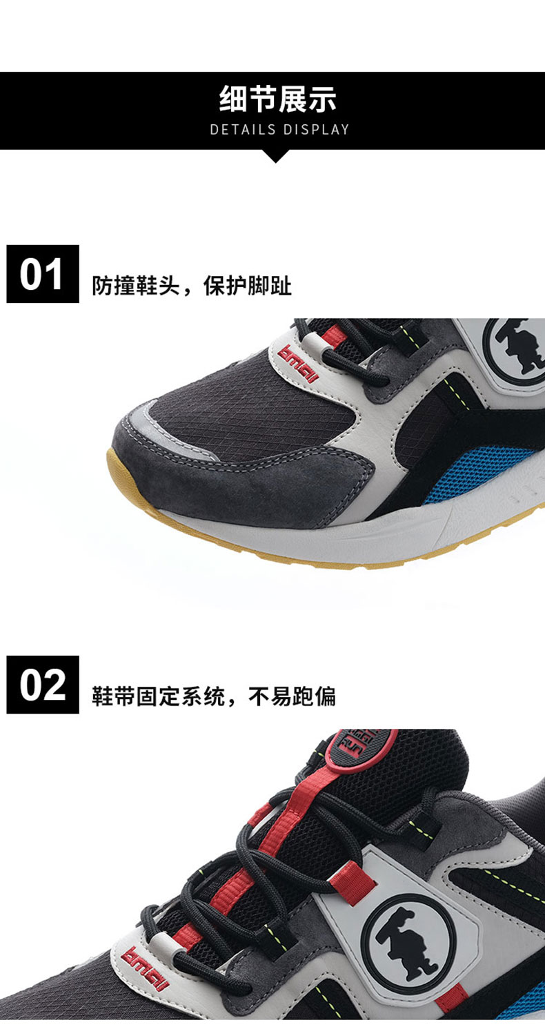 在细节上,鞋侧两边增加了透气孔,提升了透气效果;防撞鞋头,拥有鞋带固定系统,不易跑偏,后跟内侧采用网布,更柔软不会磨脚后跟。