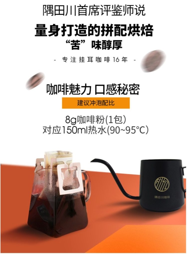 挂耳咖啡是用研磨好的咖啡粉放置在用无纺布制作的口袋里封装好,饮用的时候需要挂在杯口用开水冲泡就可以饮用,咖啡粉就可以直接扔掉了,糖和奶需要自己添加。这个咖啡是纯天然的,没加任何的添加剂。只要身边有热水水源,有杯子,即可方便享用,特别适合居家、办公室和旅行热人使用。
