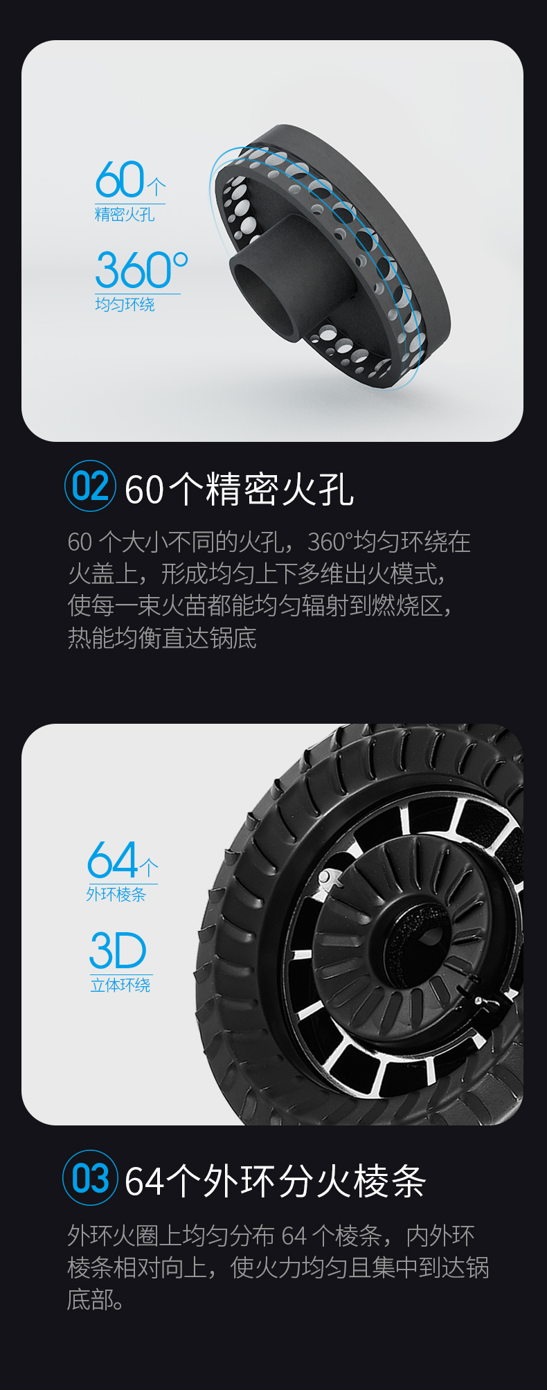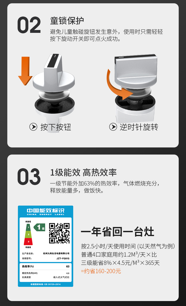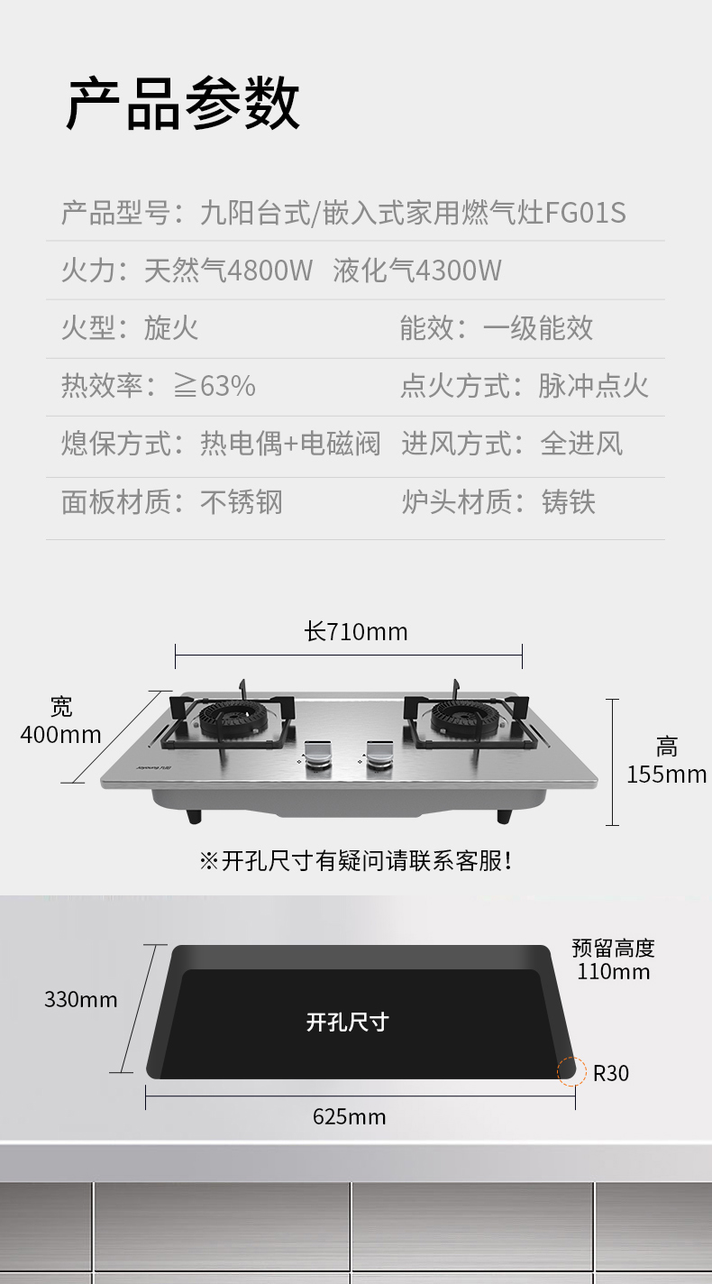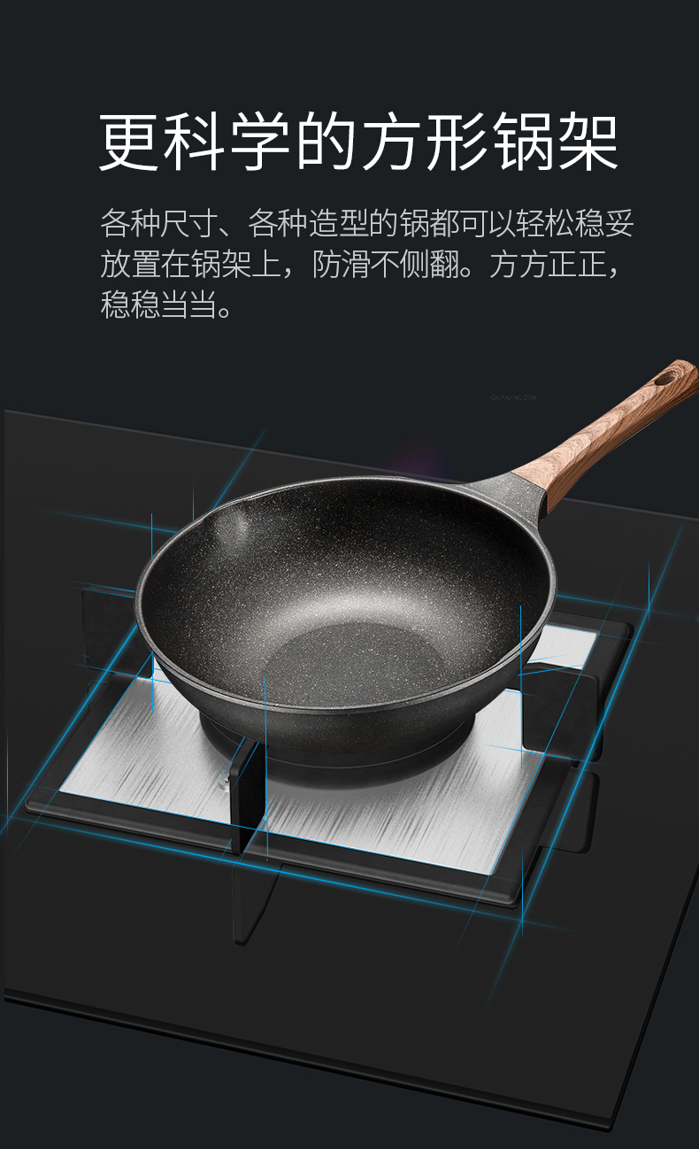 炉灶整体采用钢化玻璃+防爆油墨层+防爆膜,三层防爆防裂,耐腐蚀易清洁。采用猛火均喷燃烧系统,火力更稳更强,均匀加热无盲区,热效率高。精细的火力调节系统,火控精准。采用热敏感探头时刻检测燃烧状态,熄火自动切断燃气,避免安全隐患,使用更安全。