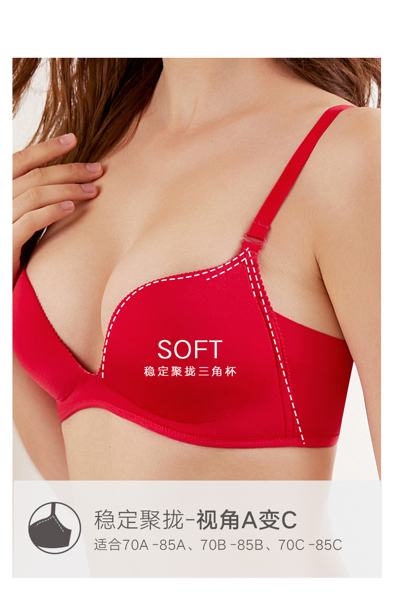 这款Maniform 曼妮芬 简约无痕无钢圈减压文胸 , 无痕轻薄透气,穿着更舒适,一片式立体模压,简约无痕又不失性感。深V低鸡心设计,增强聚拢效果。∪型美背平复后背赘肉,更显迷人美背。领券链接点此