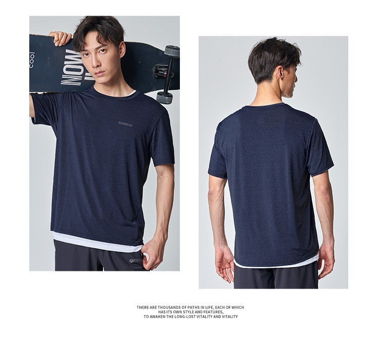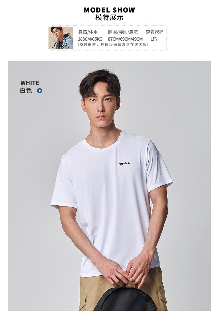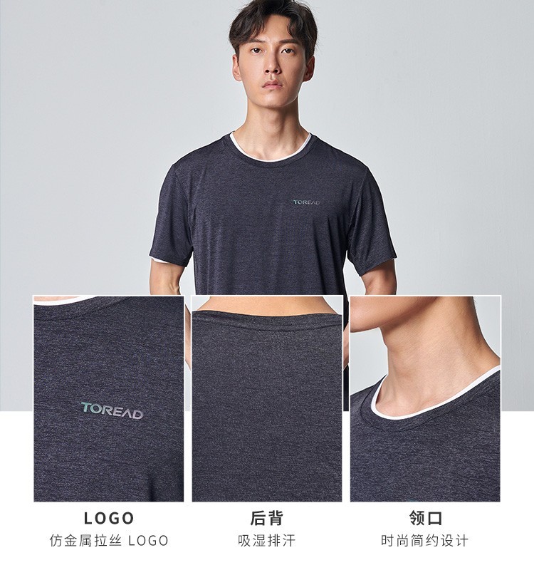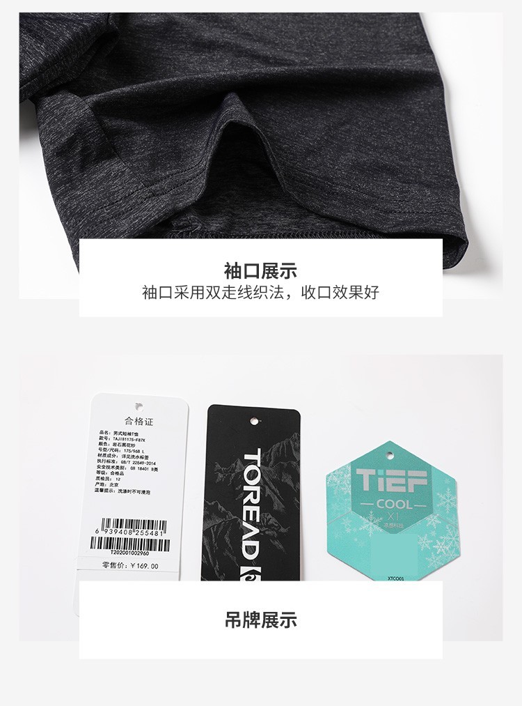 这款探路者男运动T恤是2020年的春夏款,使用锦纶+聚酯+氨纶的混纺速干面料,在瞬间接触皮肤时有明显凉感,有良好的的吸湿排汗功能,能将身体汗液排出体外,保持运动时身体舒爽不粘腻。