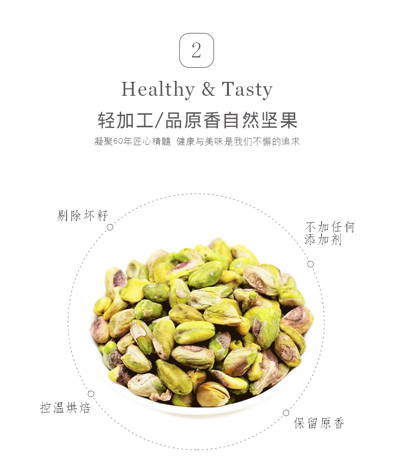 这款 开心果仁,原料美国加州进口,精选颗粒饱满,天然无添加,脱壳处理,精心烘培,口感香醇咸脆,营养丰富。除了可以直接食用,还可以作为烘焙材料。制作雪花酥、牛轧糖等,规格:500g/袋。