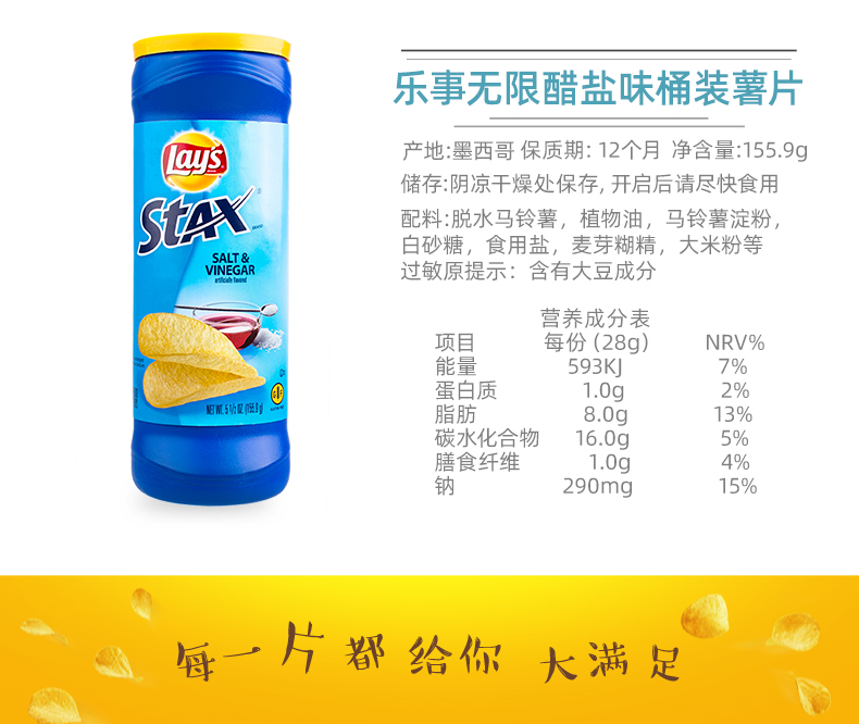 味道上有:乐事无限原味桶装薯片 163g*2桶乐事无限醋盐味桶装薯片 155.9g*2桶