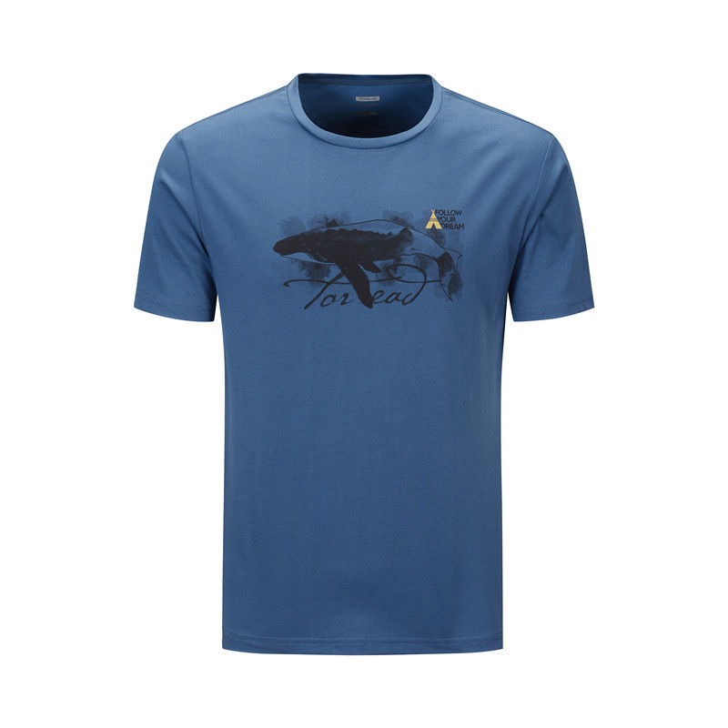 这款探路者男休闲印花T恤,使用100%纯棉面料,柔软亲肤、吸湿吸汗。合身版型,前胸是鲸鱼图案印花,增加趣味性,后领是Logo包边,舒适不摩后颈。