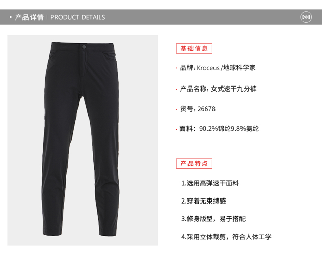 • 地球科学家 四向弹力 女休闲弹力速干裤 九分裤 69元狂欢价