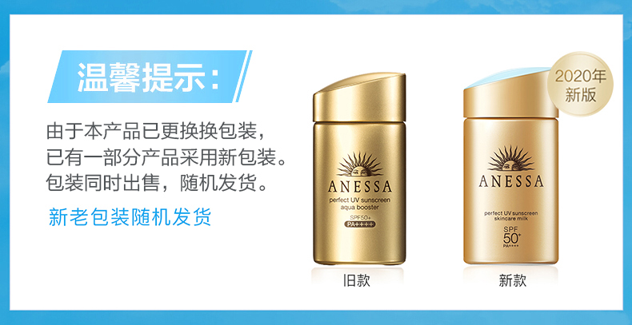 这款安热沙ANESSA蓝帽小金瓶防晒霜,日本原装进口,SPF50+,这是目前最高的防晒等级,升级水能防晒技术,防水防汗,清爽不黏腻,适合户外运动、去海边度假、海里浮潜时使用,全身都能涂抹。