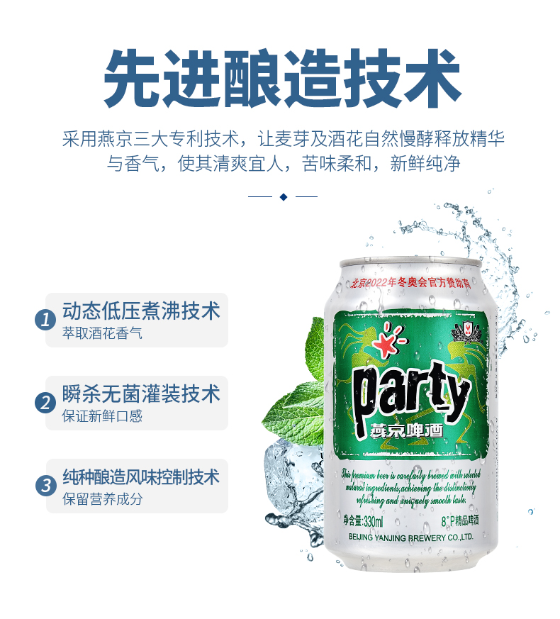 8度黄啤酒,经过第一重发酵控制氧含量;第二重脱氧水除氧;第三重两次抽真空,无氧罐装,实现零氧化。更通过阿尔法低温无氧冷除菌过滤技术的开发与应用,进一步提升燕京鲜啤的新鲜度。燕京啤酒,浓郁麦芽芳香扑鼻,清爽畅快的口感沁人心脾,新鲜鲜美的感觉回归自然,质量上乘,口感新鲜。