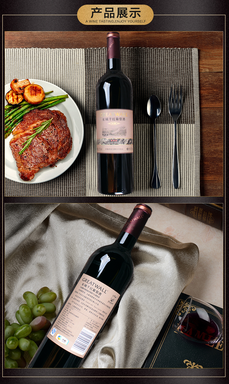 这款长城干红葡萄酒的产地是河北张家口,位于精选沙城产区,葡萄的品种选择赤霞珠,酿出的干红呈淡宝石红色,滋味醇厚,香味浓郁,回味好,丹宁含量高,经过橡木桶陈放窖酿,成酒果香浓郁,酒香优雅,别有风味。