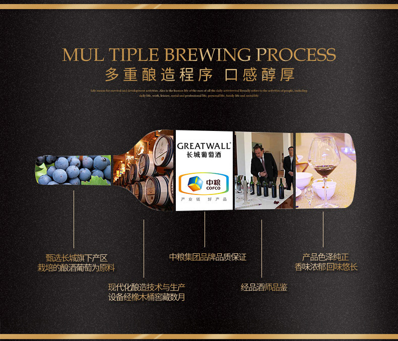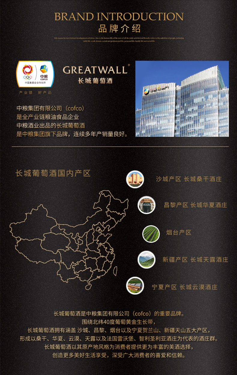 长城葡萄酒是中粮旗下的驰名品牌,多年销量、体量、品牌价值在整个国内葡萄酒行业中都名列第一,走出国门的红酒比赛基本都是长城打头阵,同时是国宴用酒,是当之无愧中国葡萄酒第一品牌。