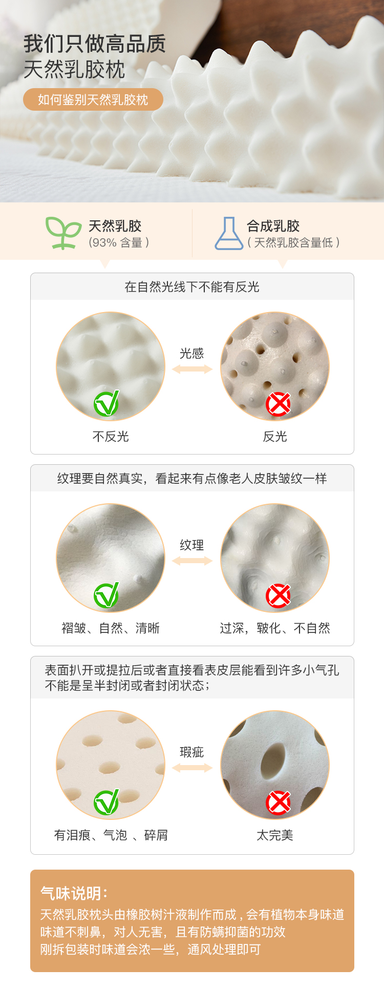 乳胶枕有一点淡淡的乳香味,并不难闻。之前用普通的枕头,三天两头落枕,入睡前翻来覆去睡不着,怎么枕都不舒服,乳胶枕的弹性非常好,翻身之后脖子不会悬空,对帮助入睡是有好处的,也极少会出现落枕的情况。