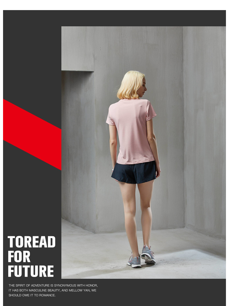 这款探路者女速干T恤,属于徒步系列,使用涤纶仿棉感面料,摸起来手感接近纯棉,穿着更舒适。功能上吸湿排汗,速干透气,还加入了除臭功能,具有异味中和的作用,可消除运动后的汗臭等异味,适用于夏季或运动时穿。
