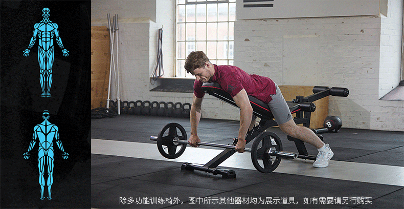 多档调节靠背,实现上斜、平躺、下斜等多种训练。设计的铃片、杠铃添加区,能有效训练脚力腿力。1.65mm的加厚回弹缓冲躺板,是按照人体工学设计的,加厚的靠垫能有效缓解运动冲击力。