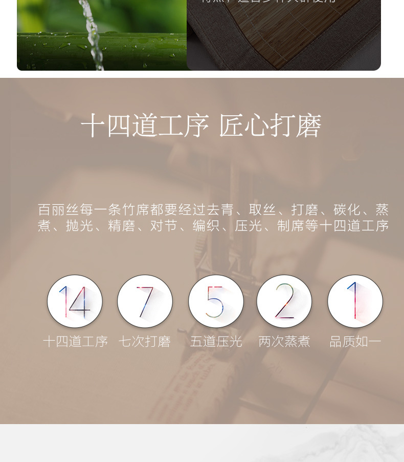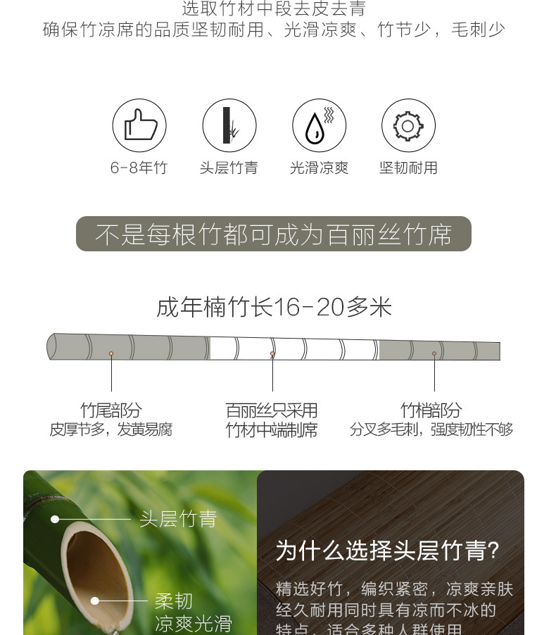 这款BLISS 百丽丝 双面折叠深度碳化凉席,甄选高氧深山老竹为原材,原色碳化,席面光滑无毛刺,环保原材不染色,吸湿透气舒适亲肤,双面可用精致包边耐磨~