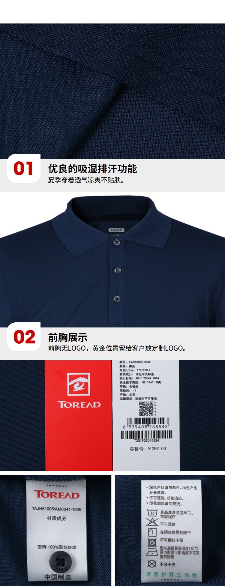 这款探路者男士透气Polo衫是2019年的夏季款,属于城市系列,使用150克的单珠地面料,表面呈疏孔状有如蜂巢,比普通针织布更吸湿透气、干爽不贴肤,吸湿排汗效果明显,上身透气凉爽,非常适合夏季穿。
