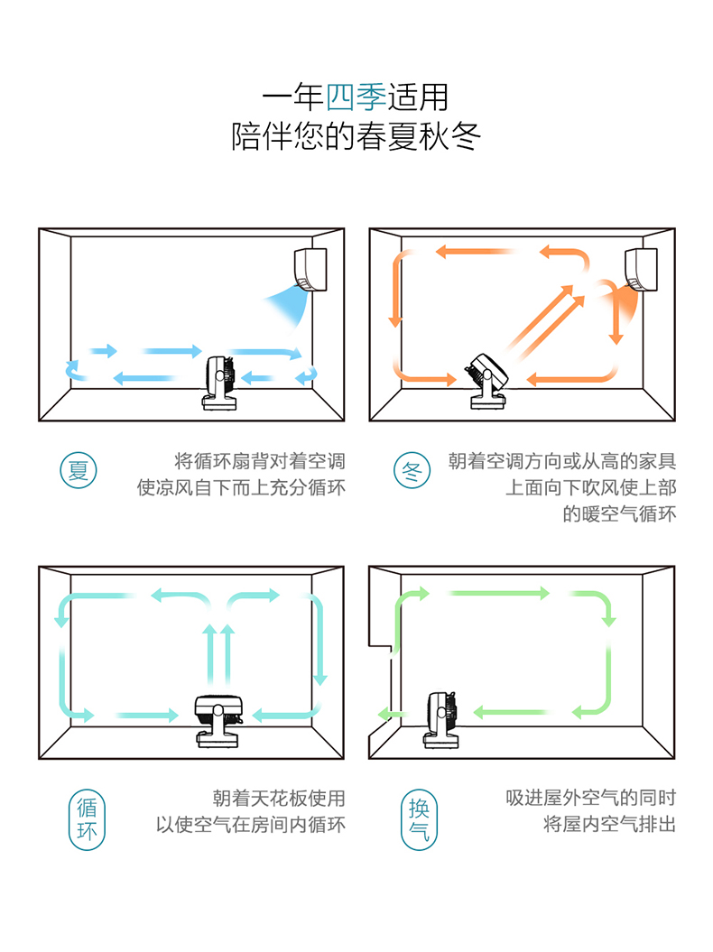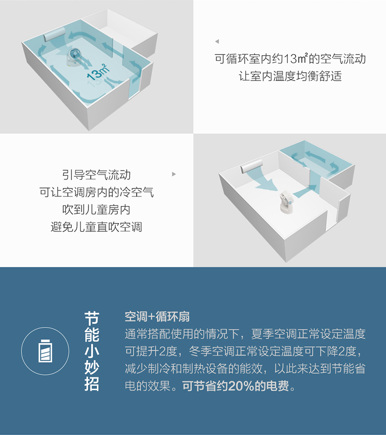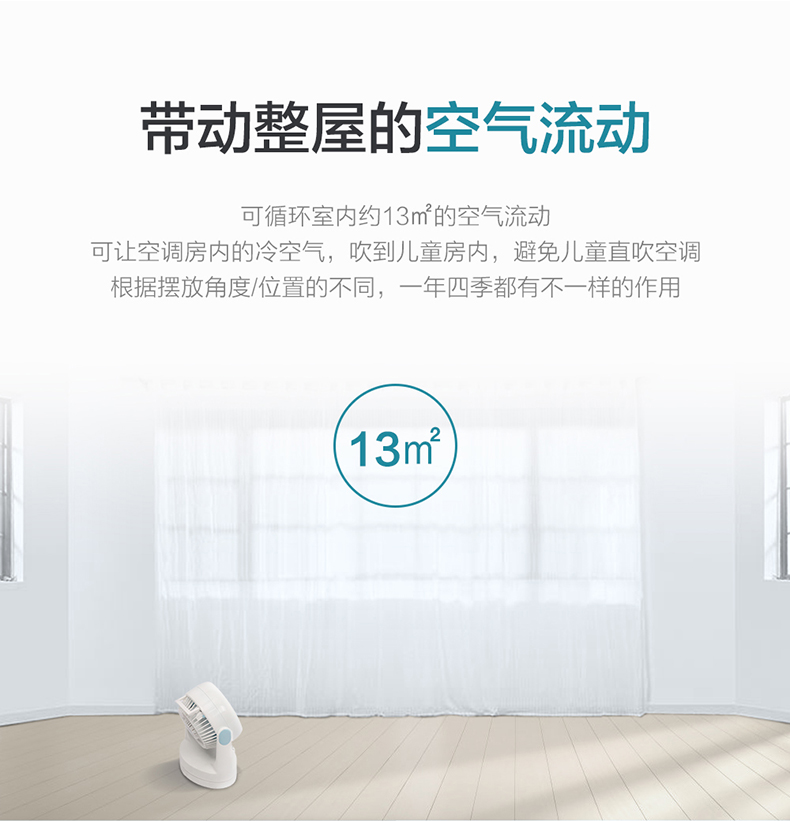 空气循环扇能够迅速地聚集气流,将聚集的气流喷射出去,遇到障碍物后气流扩散,从而产生了空气循环气流。也就是说对着人吹是没有传统风扇的伤害的,特别适合宝宝、老人使用。大家可以看店家的动图,一个气球放在上面吹,不会被吹跑。