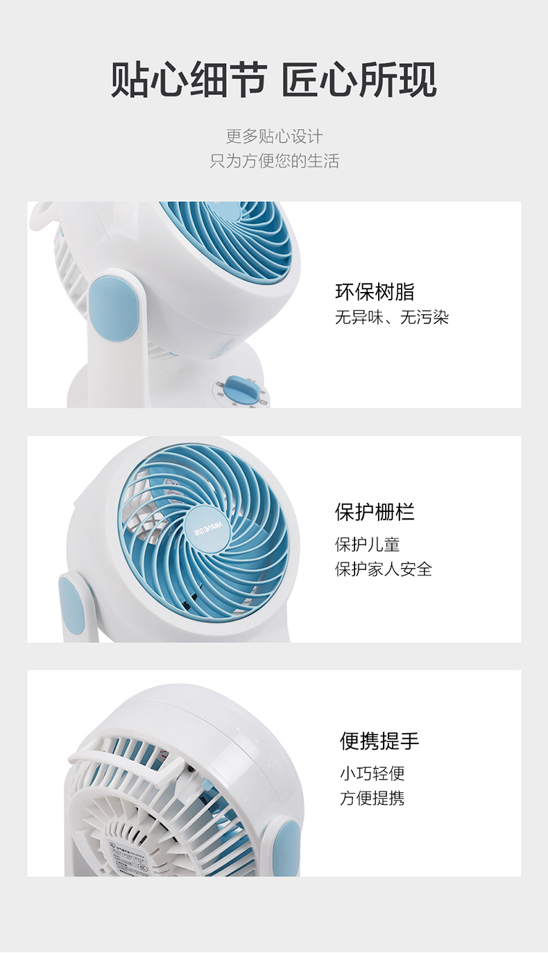 这款IRIS 爱丽思 CFA-186C 空气循环扇,采用旋涡原理,风可以送到每个角落。它可以辅助提高空调效率,起到一定节能环保的作用,且超静音。在能耗方面,本款 1档功耗16.7W,2档功耗27W,3档功耗38W,不算耗电。两色可选。