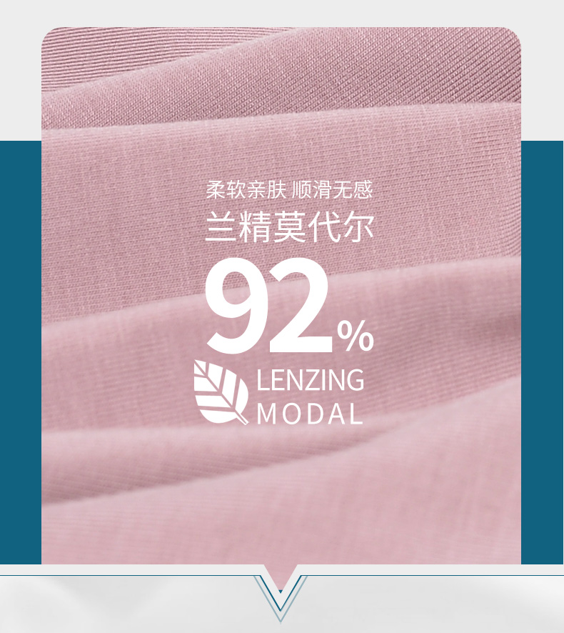 这款芊朵恋 男平角内裤,面料采用来自于奥地利兰精公司「官网地址」的莫代尔,支数是50支,含量达到92%,触感非常柔,吸湿、顺滑、透气、垂感好,小编就买过几件莫代尔的内衣,亲肤感非常好,仅次于桑蚕丝(丝绸),是我的最爱的面料;同时还混了8%弹力纤维,灵活展身,不紧不绷。