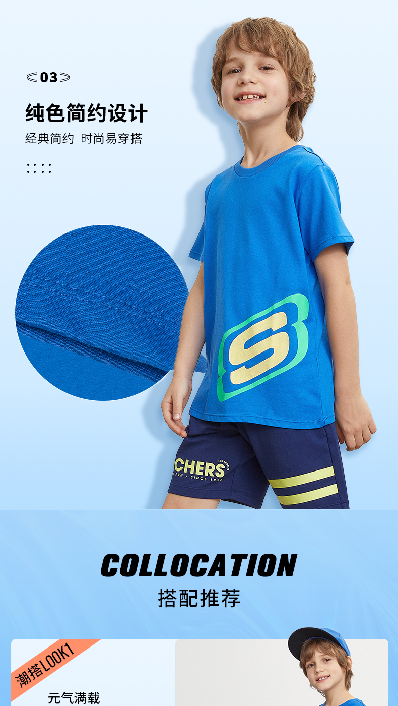 斯凯奇 儿童 速干T恤,精选100%纯棉面料,触感柔软细腻、舒适透气、大底外穿款式色彩丰富,品牌字母LOGO印花,斜纹设计,经典百搭,个性十足。