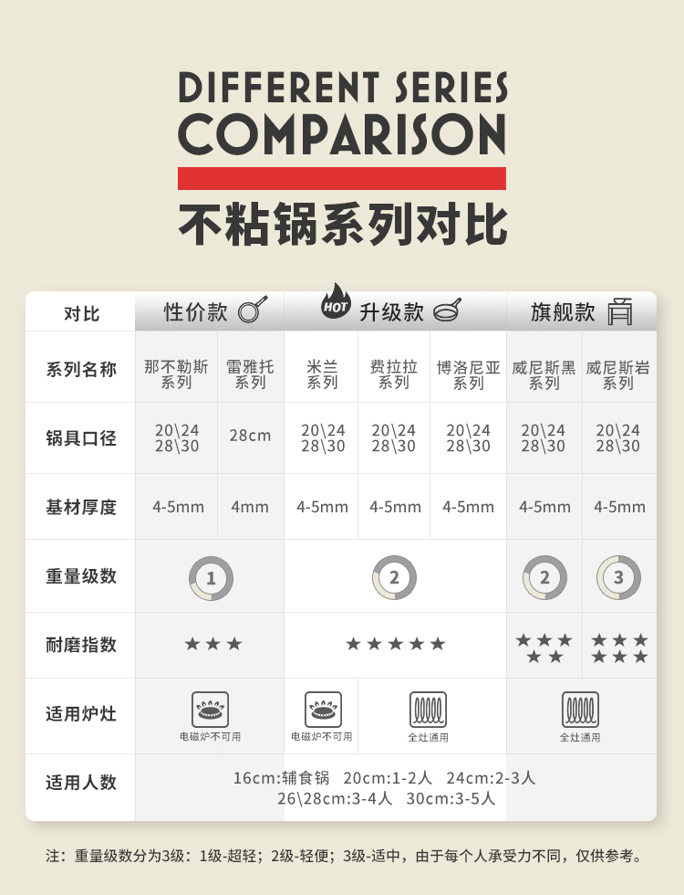 优质复合锅底,燃气灶、电磁炉、电陶炉、电热炉都能使用。电木防烫手柄,握感舒适,防烫隔热;在锅手柄处使用了红绿聪明感温点专利技术,通过颜色变化控温。