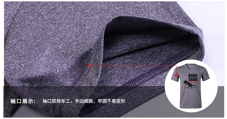 袖口和下摆是双车线工艺,走线流畅不易脱线,牢固不易变形。下摆处还有恐龙印花,增加趣味性。