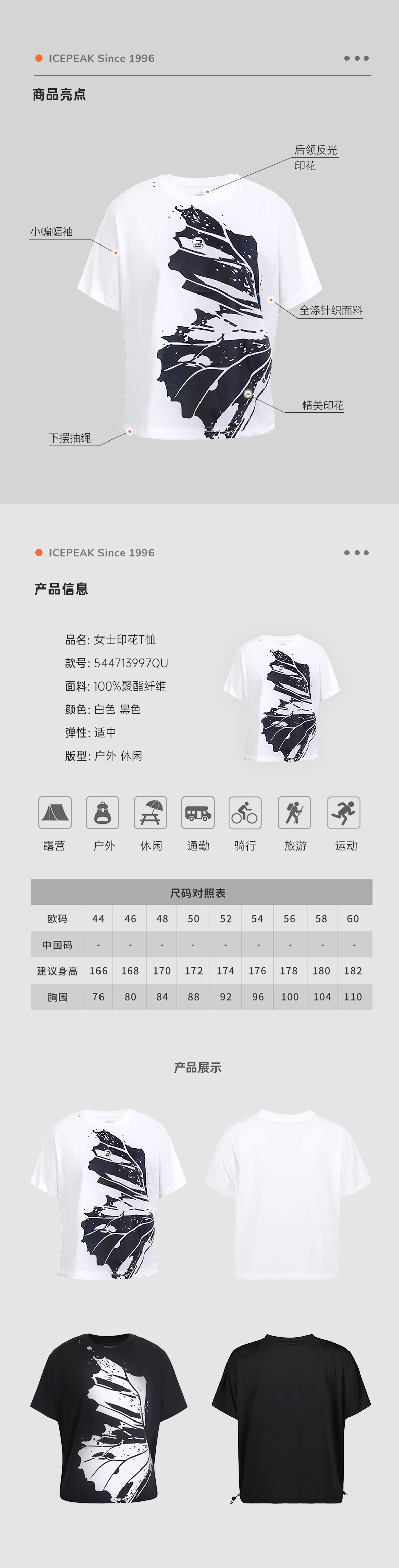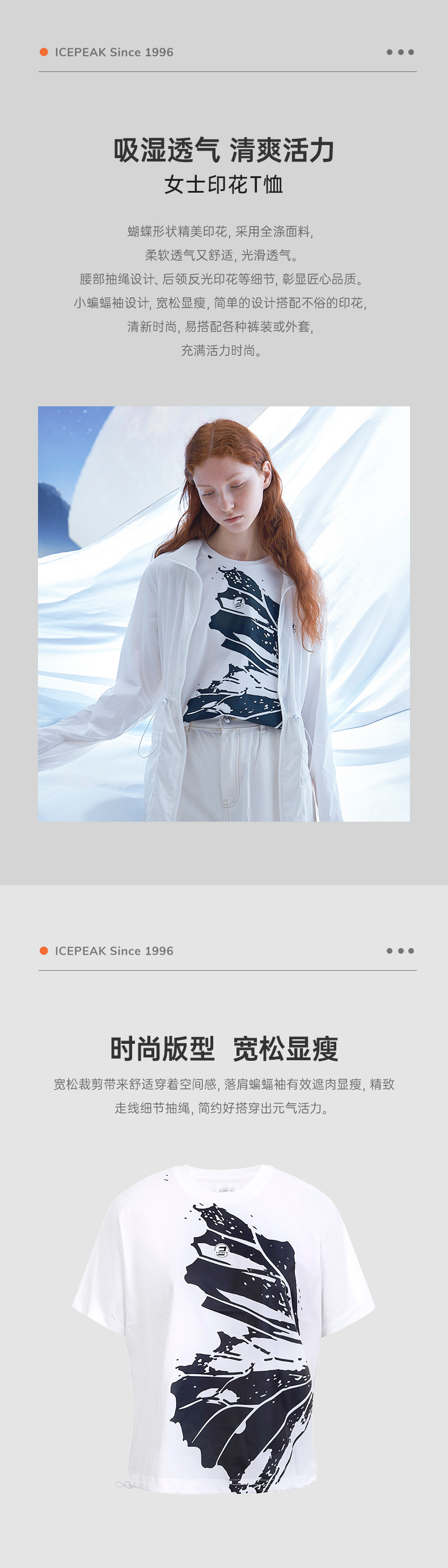 这款斯匹克icepeak 女速干透气印花T恤,采用100%聚酯纤维面料,摸起来柔软透气又舒适,光滑细腻不粗糙,柔韧不起球。
