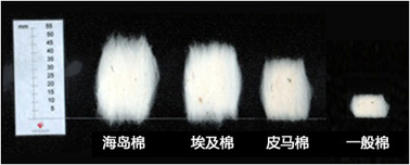 ▲棉花纤维长度对比,皮马棉和新疆棉相差不大