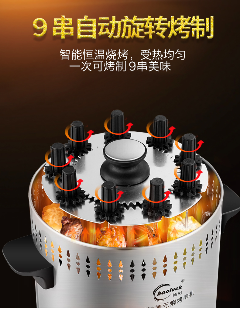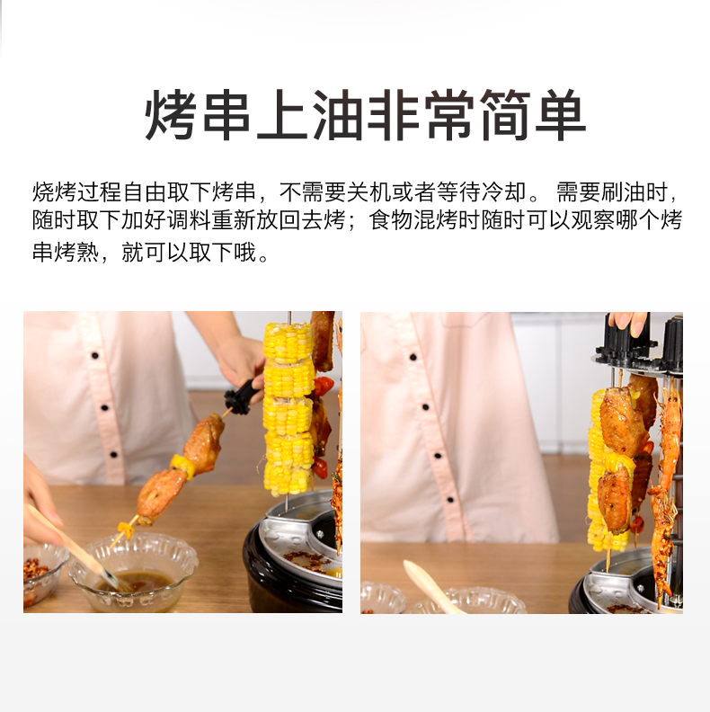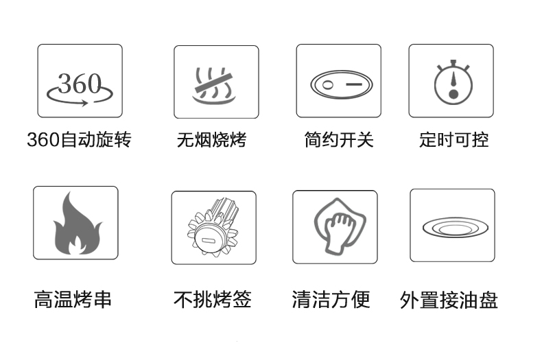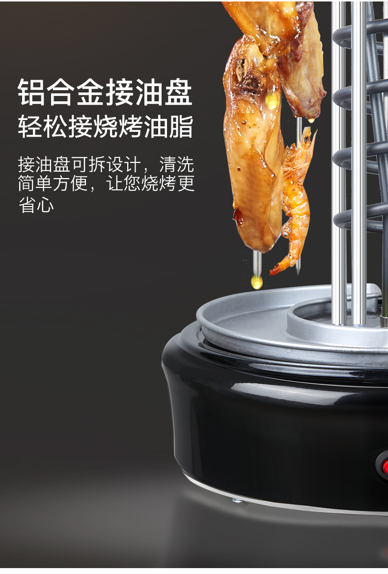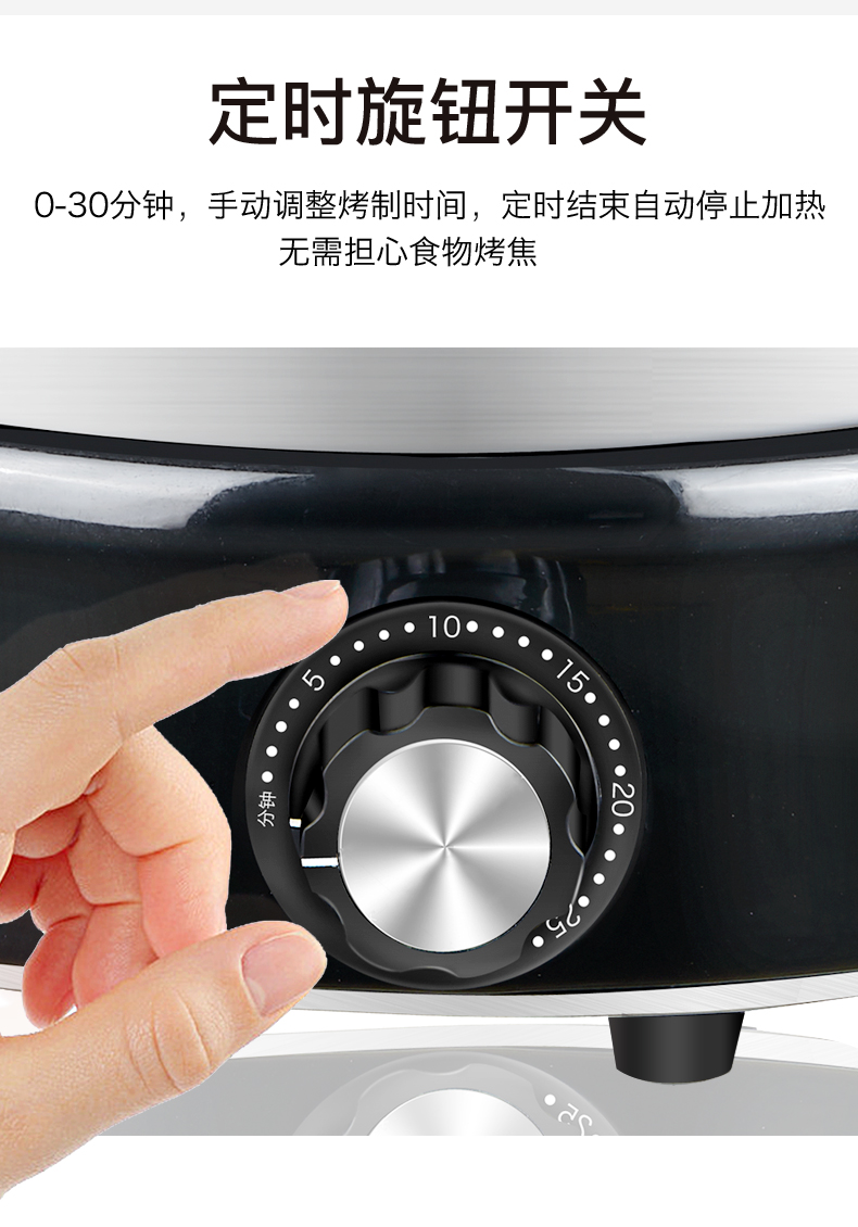 利用电能红外线,模拟炭火烧烤效果,短时间内达到烧烤温度,烤制外酥内嫩。可根据自身爱好,选择火力大小,实现各种DIY。无烟不呛人,操作方便,居家必备。