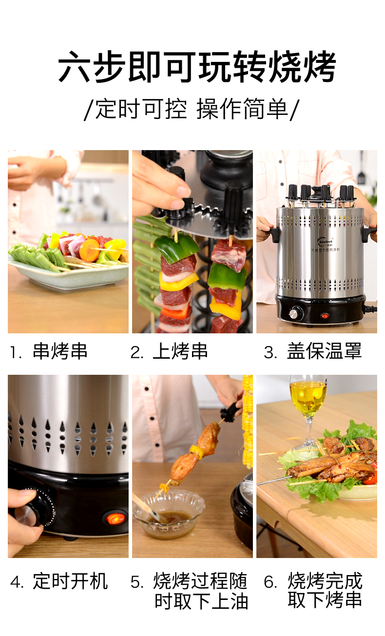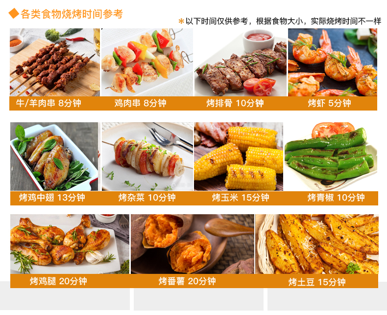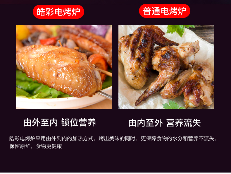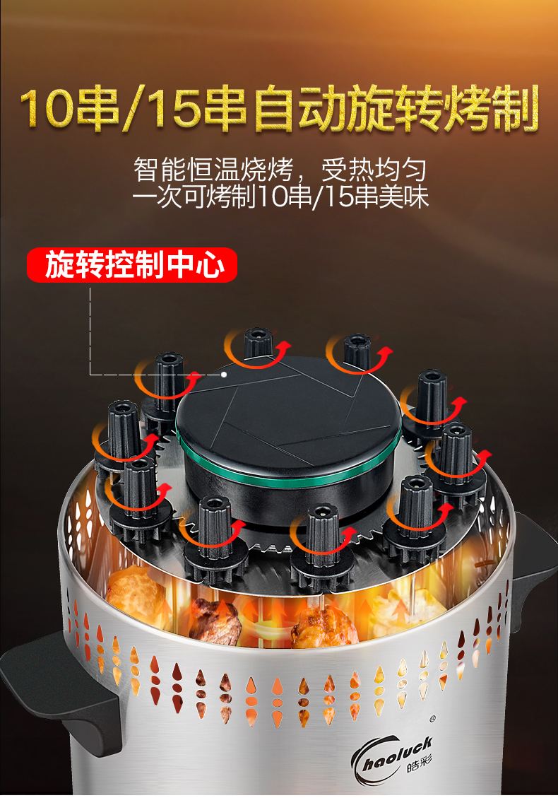 利用电能红外线,模拟炭火烧烤效果,短时间内达到烧烤温度,烤制外酥内嫩。可根据自身爱好,选择火力大小,实现各种DIY。无烟不呛人,操作方便,居家必备。