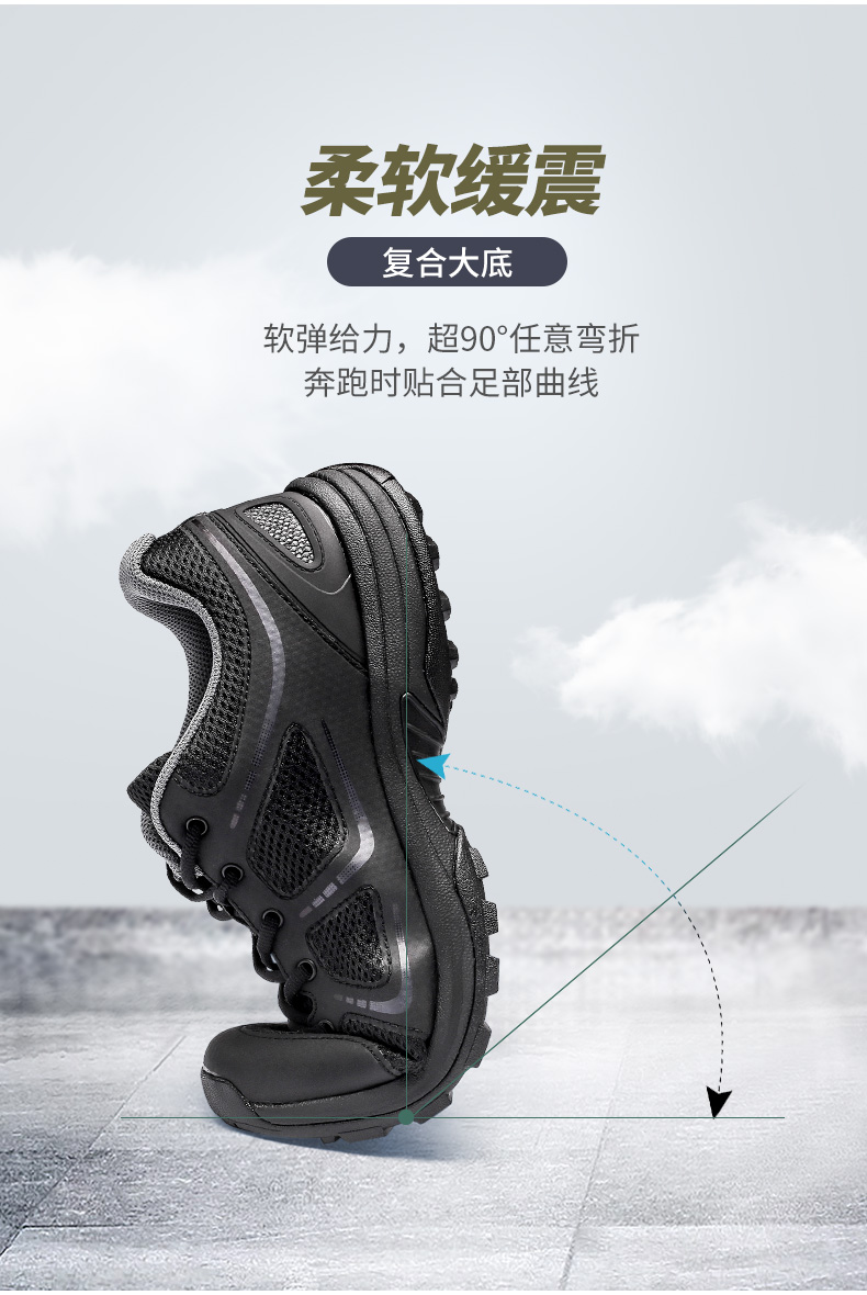 运动款式的作训鞋吸取了运动、户外产品经验,进行了颠覆性的改进,新作训鞋改变了以往纯胶底四周硫化围条的结构,舒适性、运动性、弹性明显增强。防滑橡胶底与EVA发泡材料的结合,能有效增强运动缓冲性和舒适感,鞋面织物中还加入汉麻等材质,有助于吸湿排汗、抗菌防臭。“穿这双鞋跑步不伤脚踝,而且看起来还很时尚。
