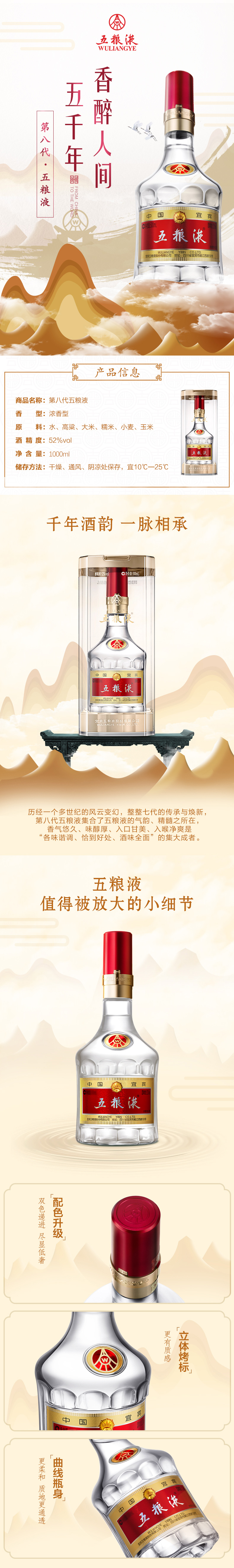 这款是普五 第八代,浓香型白酒以高粱、大米、糯米、玉米、小麦五种粮食为主要原料酿制而成,酒液澄澈口感醇厚,入口绵柔细腻爽净,余味悠长浓香突出,整体协调丰满。酒精度52% vol,规格225ml*2瓶的礼盒装。瓶盖五粮液商标,瓶颈带有防伪标志,水晶盒包装,自饮、馈赠、待客都不错。