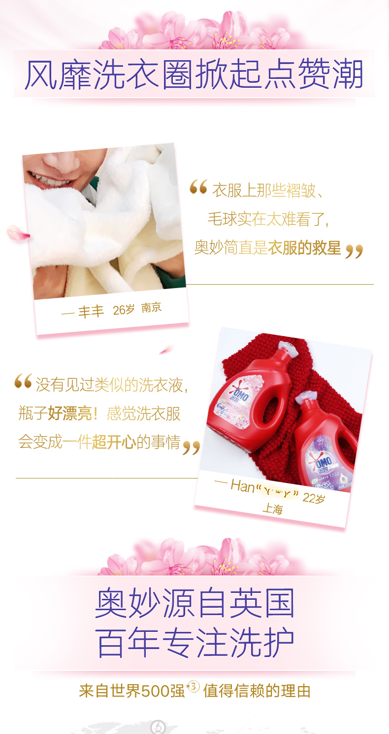 这款是奥妙洗衣液+金纺护衣的混合,内含纤维酵素,既能深入衣物内部迅速深度清洁,瓦解污渍,又能滋养护衣,抚平毛躁,护形不褶皱,能有效减少衣物纤维断裂,毛躁起球的现象发生。使用7重植萃精油,国际专业调香师调配,洗涤24小时候仍旧留有香味。