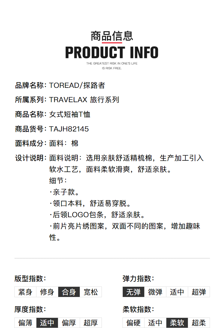 这款探路者女T恤,使用100%新疆精梳棉,比普通棉更干净柔软,在生产加工中还引入了软水工艺,使面料更加柔软滑爽、舒适亲肤。