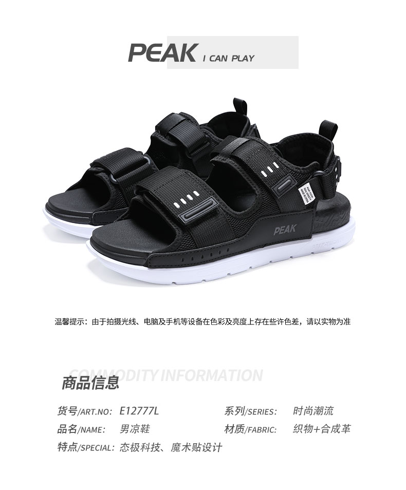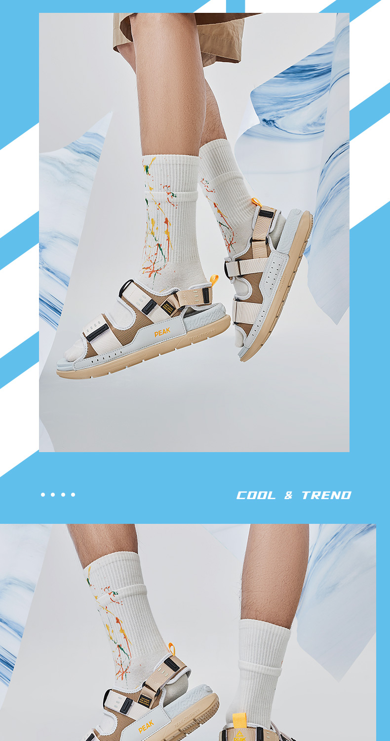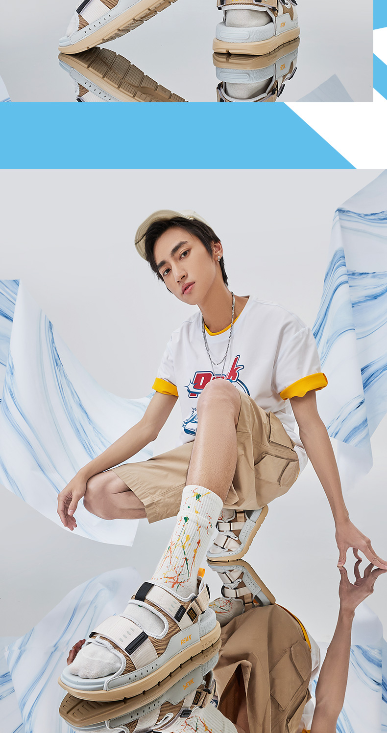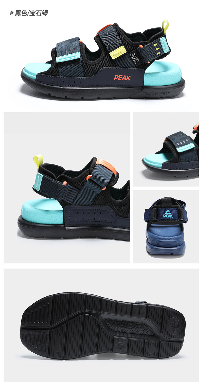 这款凉鞋时尚机能风格,态极科技中底,自适应轻弹缓震,舒适脚感可满足日常休闲、运动需求,鞋面四面弹织带+皮革+魔术贴结构,方便穿脱,轻松玩转夏日潮搭。