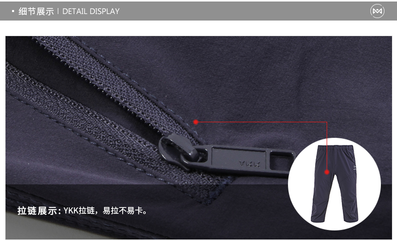 在款式和细节上,标准版型,3D立体剪裁,符合人体工程学设计,上身活动自如,灵活无束缚。前门襟使用日本YKK拉链,两侧的插袋也都设有拉链,两个后袋也都有防盖,置物安全。后身附带一个马黄攀附D型环,可挂钥匙或登山扣。