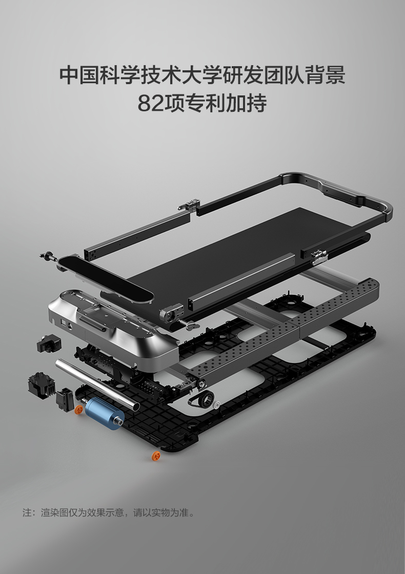 跑步平台是四层专业跑道级的跑层结构,由防滑防静电走步带、低摩擦系数的强耐磨层、自带缓震效果的EVA柔软层、坚固耐用的高密度纤维板制成,具有优越的回弹性能,减震减噪防静电。