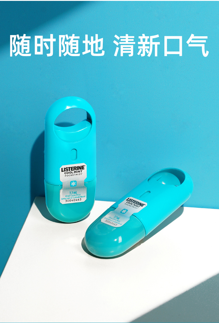 这款李施德林 口腔喷雾,主要作用是清新口气,去除口臭,冰蓝口感,无糖零卡路里,安全健康。外形是扁平设计,便于便携;薄雾小滴液设计,能直达口腔,帮助改善口腔健康。