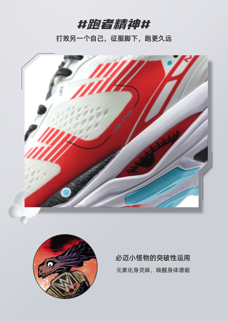 同时鞋面上还覆盖有专属全马反光银标识,既能增加夜跑的安全性,还能很好的稳固鞋面不变形,也能彰显跑马拉松的么魅力与精神(特点就是帅)。
