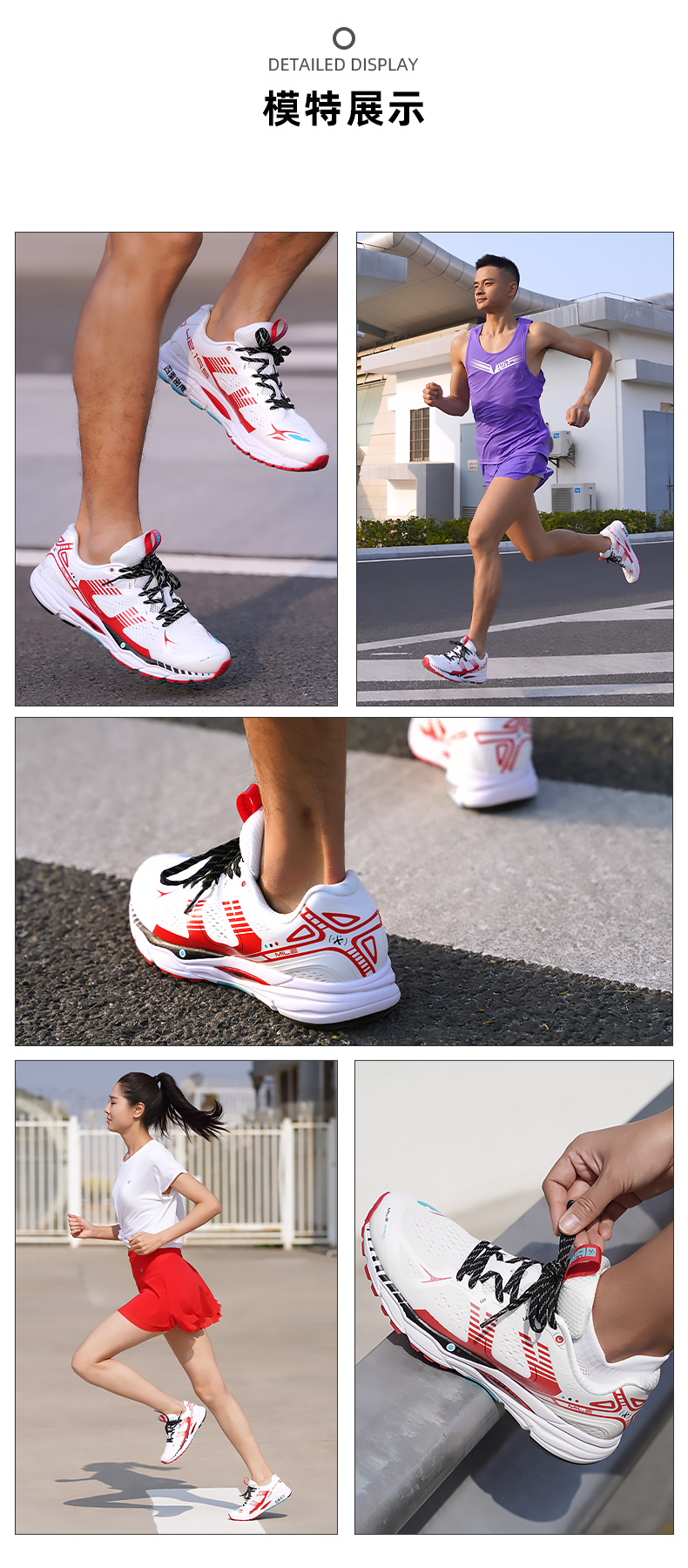 在细节上,一片式植绒鞋舌,能更好更舒适的贴合双脚脚面,不会在跑步时左右来回晃动。后跟是CARBON后跟系统,可以很好的防止脚部过程中后脚跟的晃动,加上锯齿防滑纹,抓地力好且耐磨。鞋楦符合国人脚型。