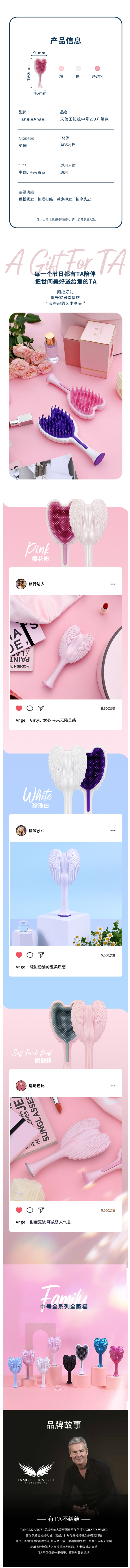 Tangle现有美发梳和宠物梳,不同款式和大小,型号很多,但人气最高的,依然是「Tangle Angel天使美发梳」、「Tangle Teezer便携美发梳」这两款。