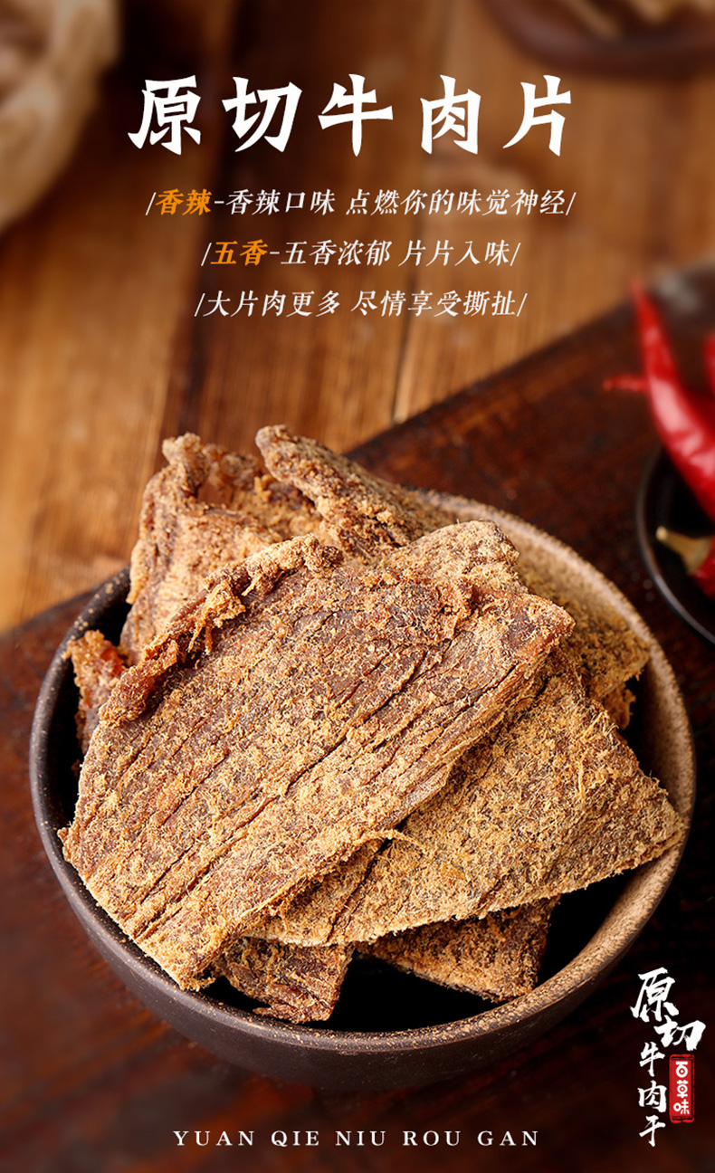 精选上等牛肉制作,牛肉香味纯正,肉质鲜筋道嚼劲,丝丝入味,软硬适中,低脂高蛋白,营养丰富!不怕胖!